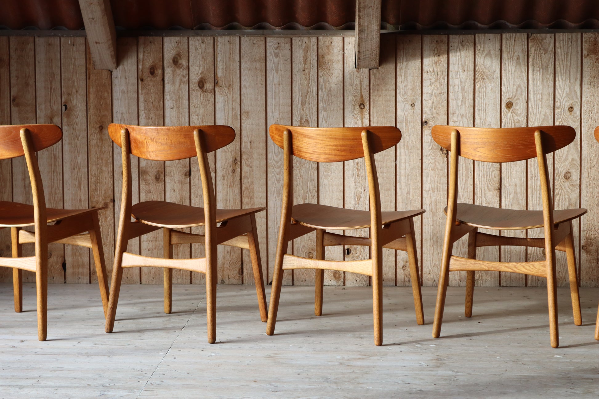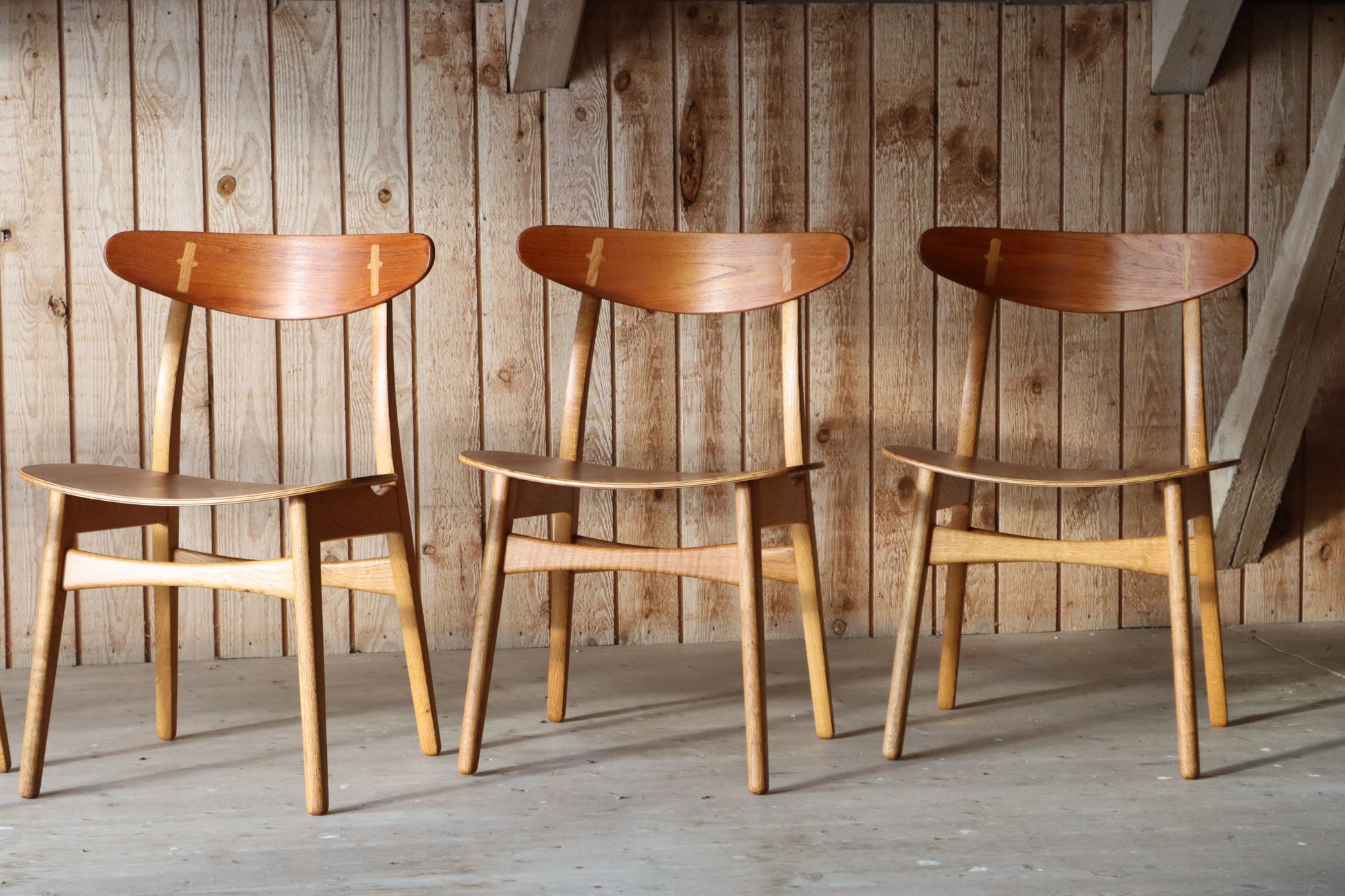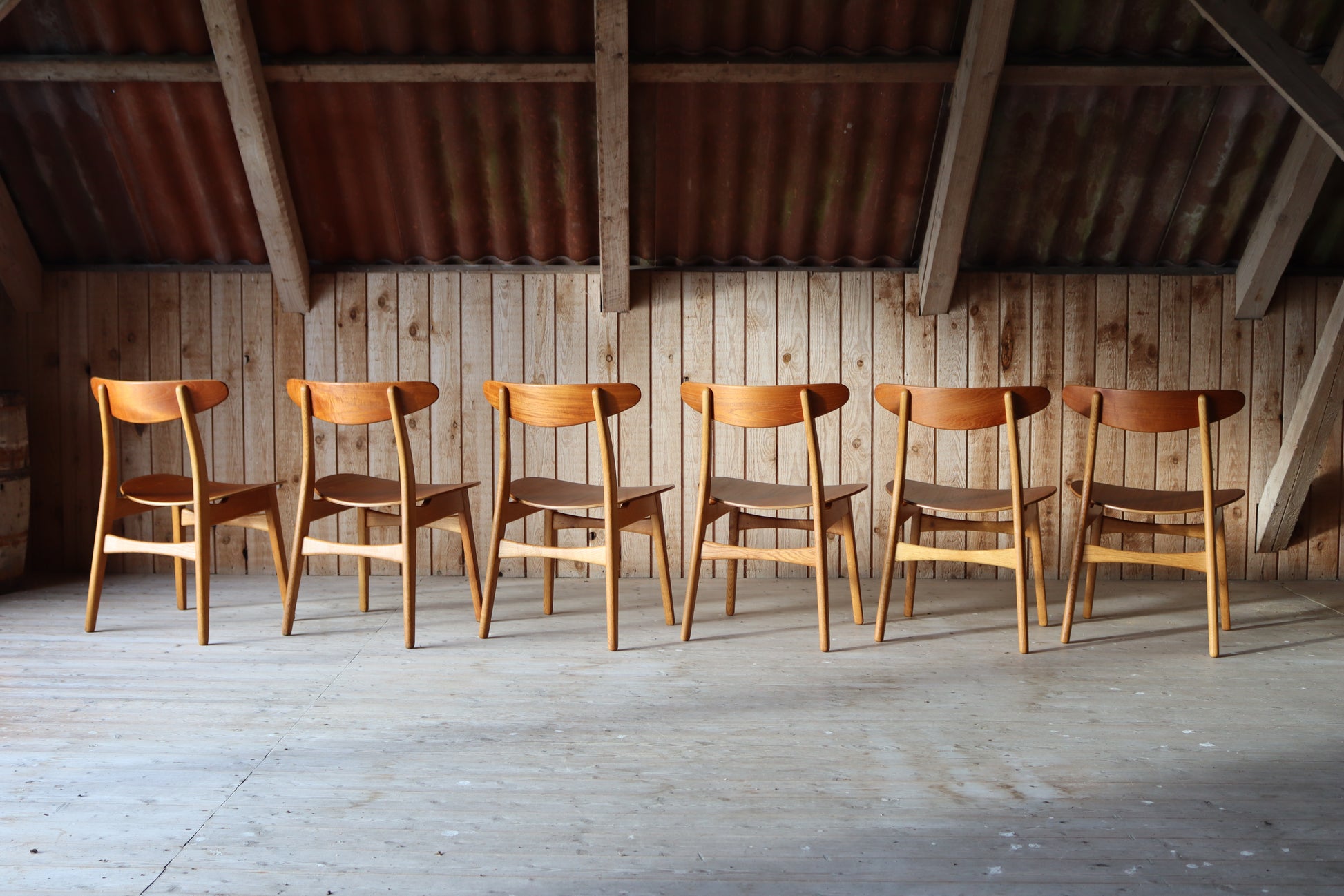 Seldom seen edition of CH30 dining chairs designed by Hans J. Wegner, made at the workshop of Carl Hansen & Søn.