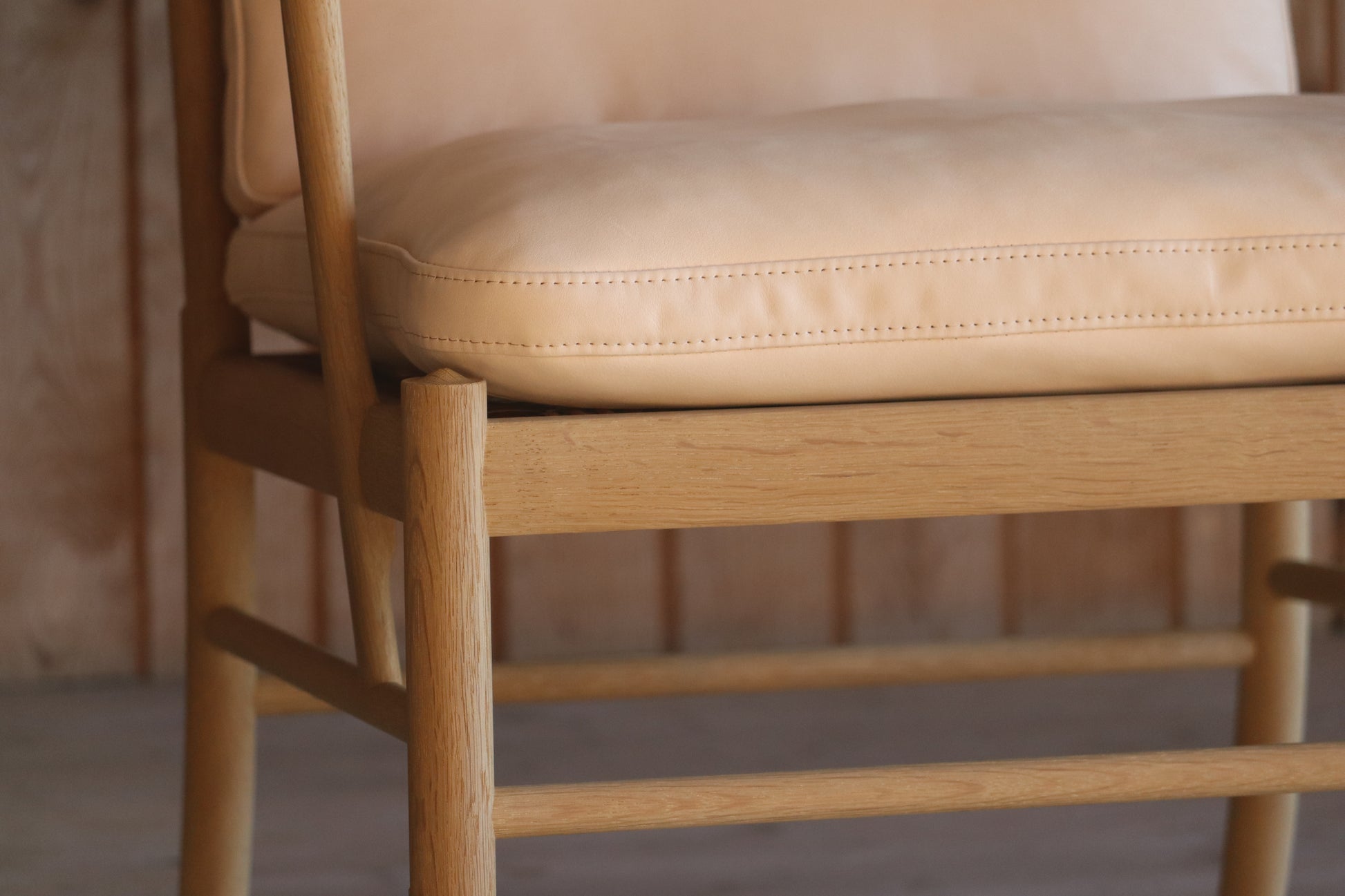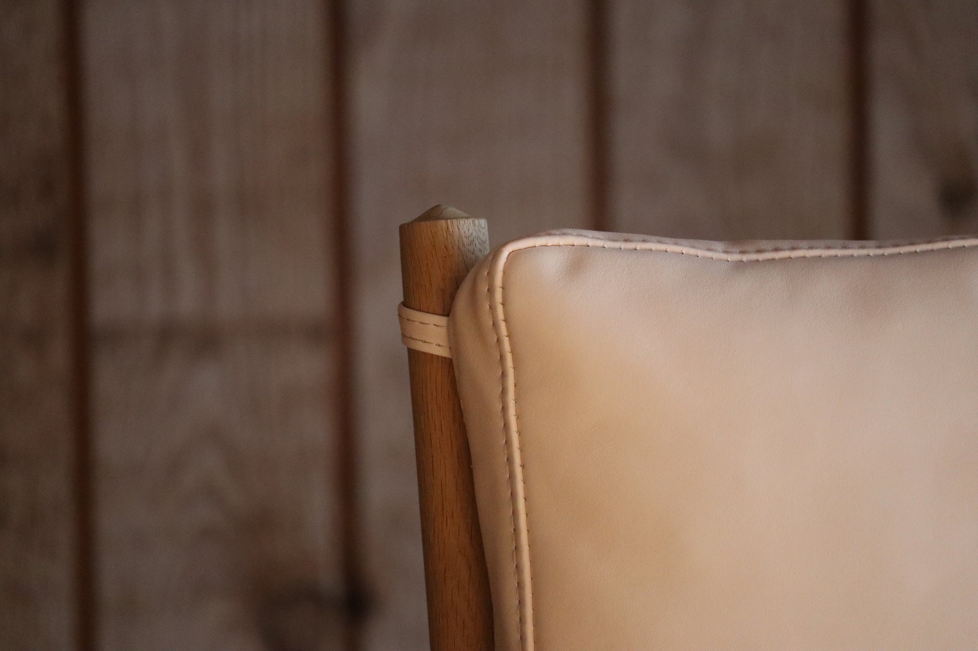 New original down feather cushions, upholstered with pure vegetable leather from Sorensen Leather.